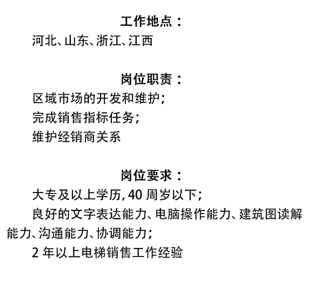 | 行業(yè) | 銷售招商類 | 職位 | 銷售招商類 |