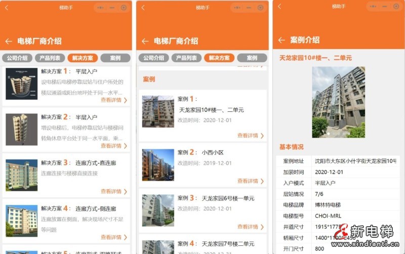 在功能板塊內(nèi),展示我司企業(yè)介紹和技術(shù)實(shí)力、行業(yè)尖端產(chǎn)品列表、定制化加梯解決方案、經(jīng)典加梯實(shí)操案例等內(nèi)容。居民可以通過小程序直觀的了解到遠(yuǎn)大智能工業(yè)博林特電梯在加梯領(lǐng)域的綜合優(yōu)勢及堅(jiān)持致力于為客戶提供安全、舒適、節(jié)能、環(huán)保的產(chǎn)品及優(yōu)質(zhì)、快速的服務(wù)理念。
