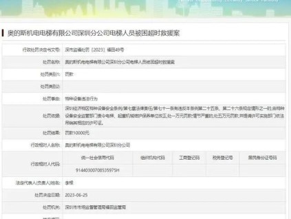 近日從深圳市市場監(jiān)督管理局網(wǎng)站獲悉,深圳市市場監(jiān)督管理局福田監(jiān)管局發(fā)布行政處罰信息(行政處罰決定書文號(hào):深市監(jiān)福處罰〔2023〕福田49號(hào)),涉及奧的斯...[詳情]